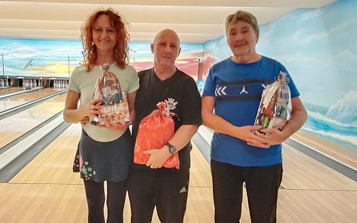 Finále: Divize „B“ nastupuje na dráhy 1 – 4. , „Divize A “ obsazuje zbytek herny. 8 dvoustovek je jen slabá náplast na dnešní lopotnou hru většiny hráčů a tak si F.Mlčák dokráčel pro další vítězství. Druhým místem zúročuje znalost „ domácí“ herny Péťa Henzl a třetí „ pytlík“ si odvážím já do Podkrkonoší… Divizi“B“ ovládá tandem V.Hasník a J.Krejčí třetí flek si odváží opět D.Koukal.